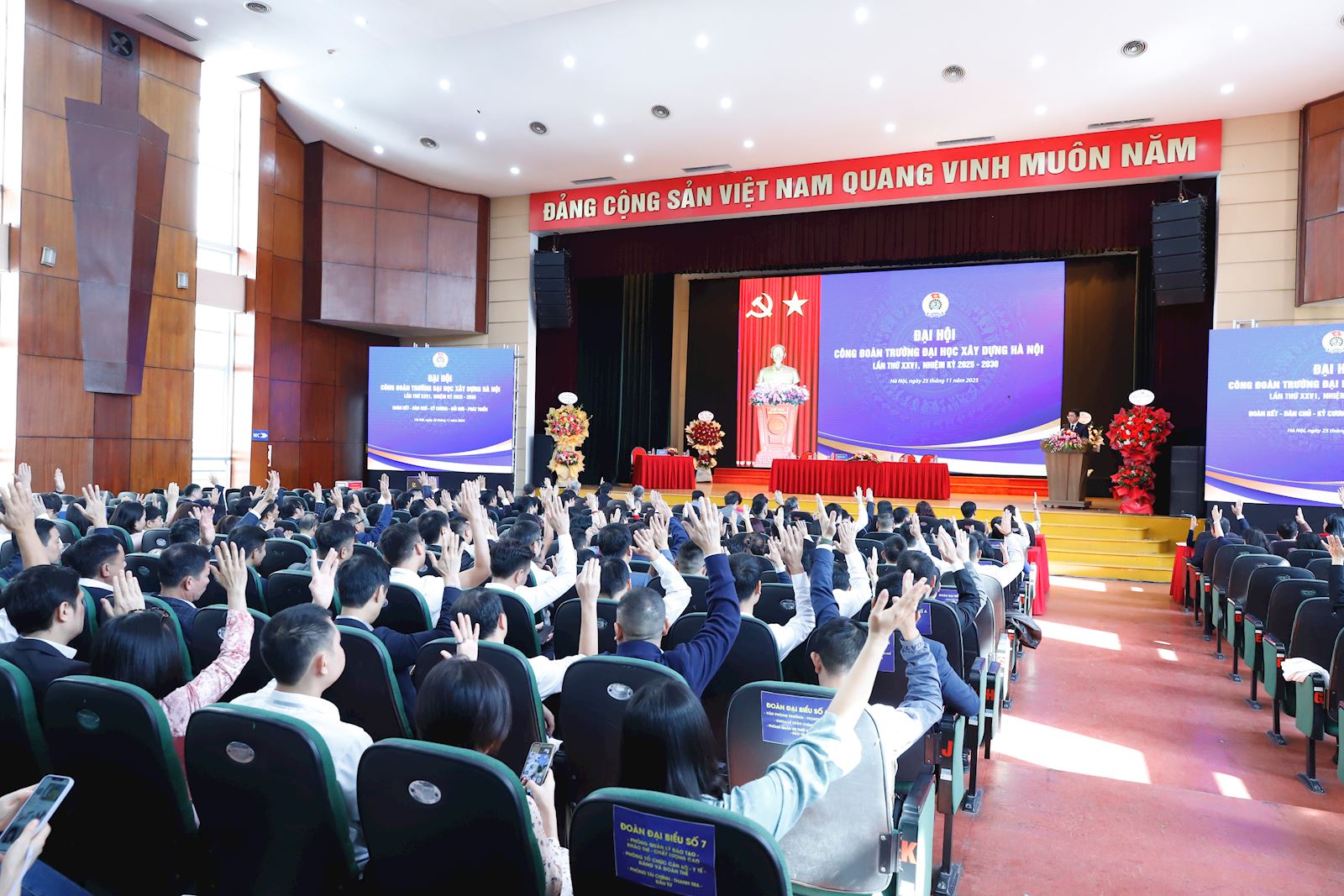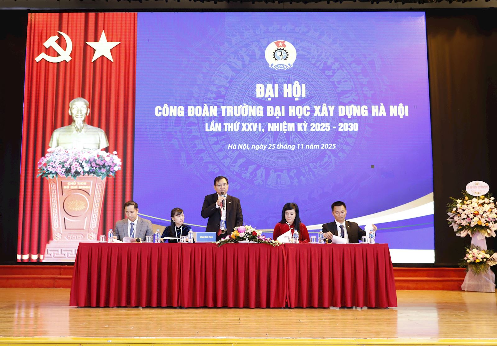Sau 1/2 ngày làm việc khẩn trương và nghiêm túc, Đại hội đại biểu Công đoàn Trường Đại học Xây dựng Hà Nội khóa XXVI, nhiệm kỳ 2025 - 2030 với khẩu hiệu Đoàn kết - Dân chủ - Kỷ cương - Đổi mới - Phát triển đã thành công tốt đẹp. Tin tưởng rằng Công đoàn Trường Đại học Xây dựng Hà Nội nhiệm kỳ 2025 - 2030 sẽ hoàn thành xuất sắc các nhiệm vụ đặt ra, là chỗ dựa tin cậy cho cán bộ viên chức, người lao động, là cánh tay nối dài của Đảng ủy, Ban Giám hiệu, góp phần xây dựng Trường ĐHXDHN ngày càng phát triển mạnh mẽ.