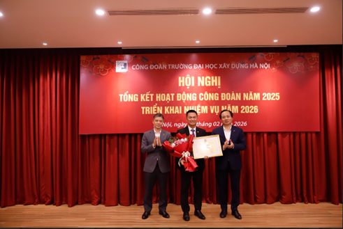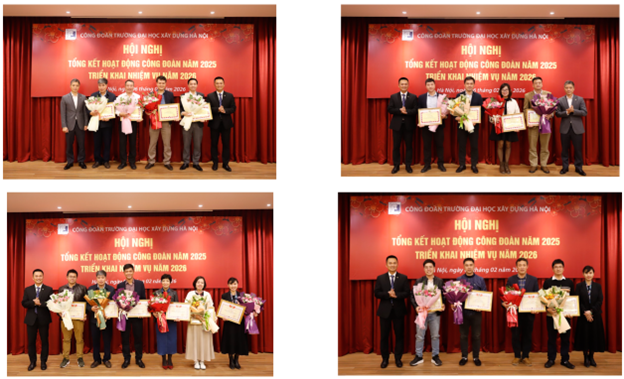 Hội nghị cũng đã công bố các Quyết định khen thưởng dành cho các tập thể và cá nhân công đoàn xuất sắc trong năm học vừa qua. Đặc biệt, CĐ trường Đại học Xây dựng Hà Nội đã vinh dự nhận Bằng khen của Tổng liên đoàn Lao động Việt Nam vì thành tích xuất sắc trong các hoạt động năm 2025.